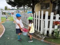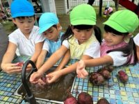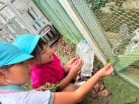 園で飼っているヤギのミリーちゃんはお芋のツルが大好物ですが、ウサギもお芋の葉っぱを勢いよく食べていました🐇🌿